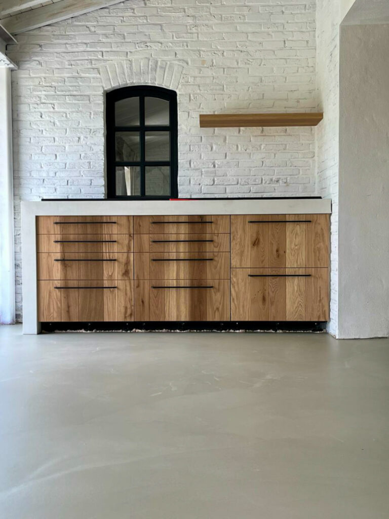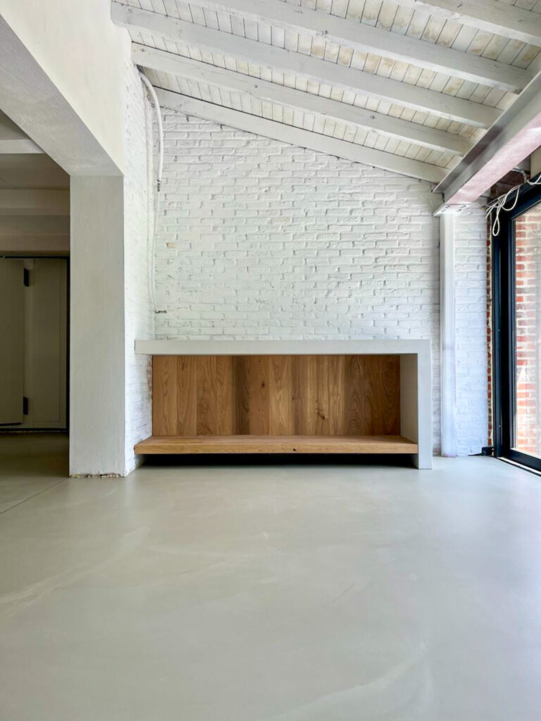 Lors de la rénovation d'une maison, le choix s'est porté sur un sol coulé minéral très fin, résistant à l'usure et élégant : LDS SL 502. Grâce à certaines propriétés techniques – absence de retrait, développement rapide de la résistance et surface lisse, par exemple –, on obtient un beau sol gris clair à l'aspect béton. Et ce, avec une hauteur de pose limitée de seulement 3 à 38 mm.
